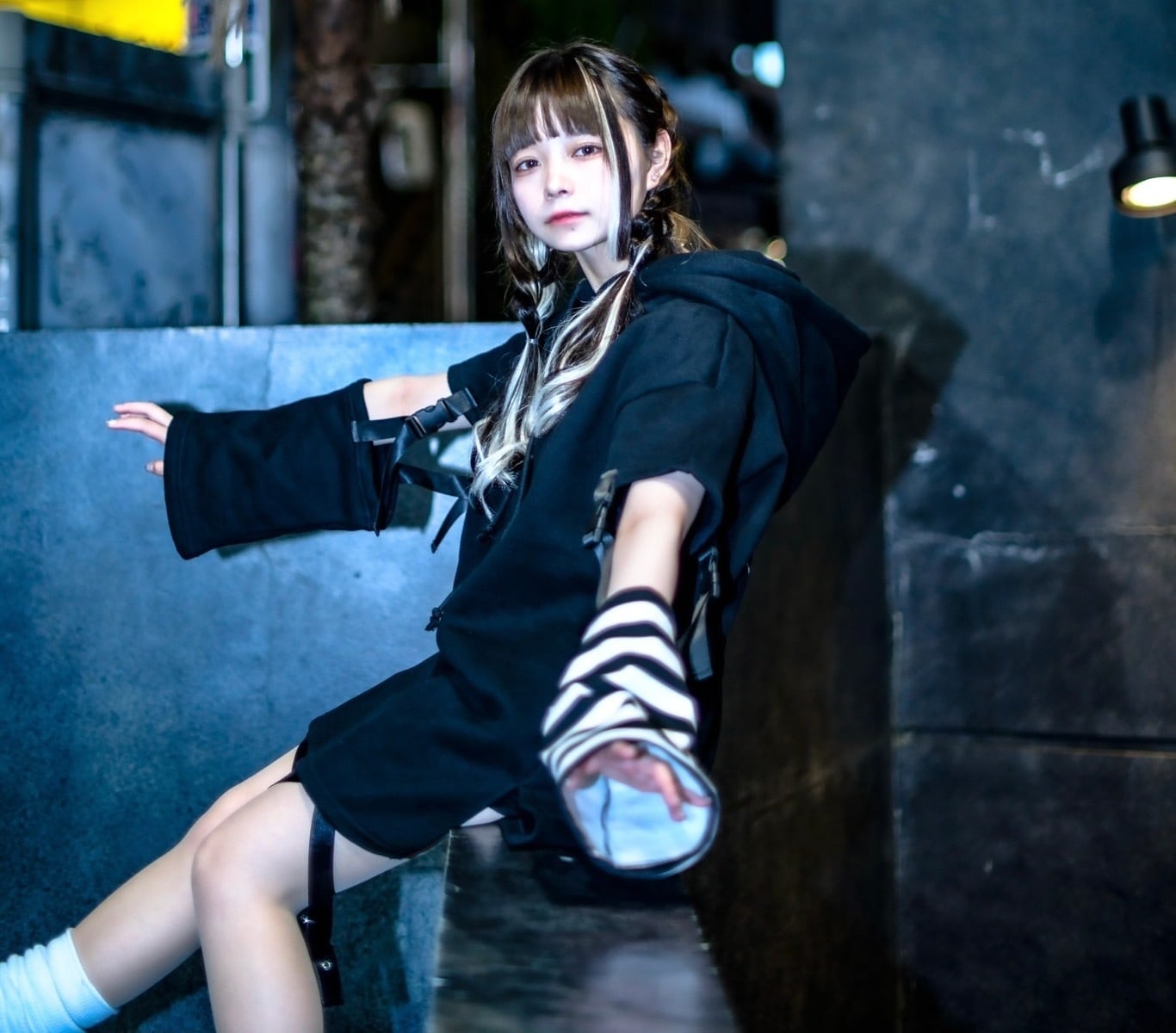 白プリント×黒袖